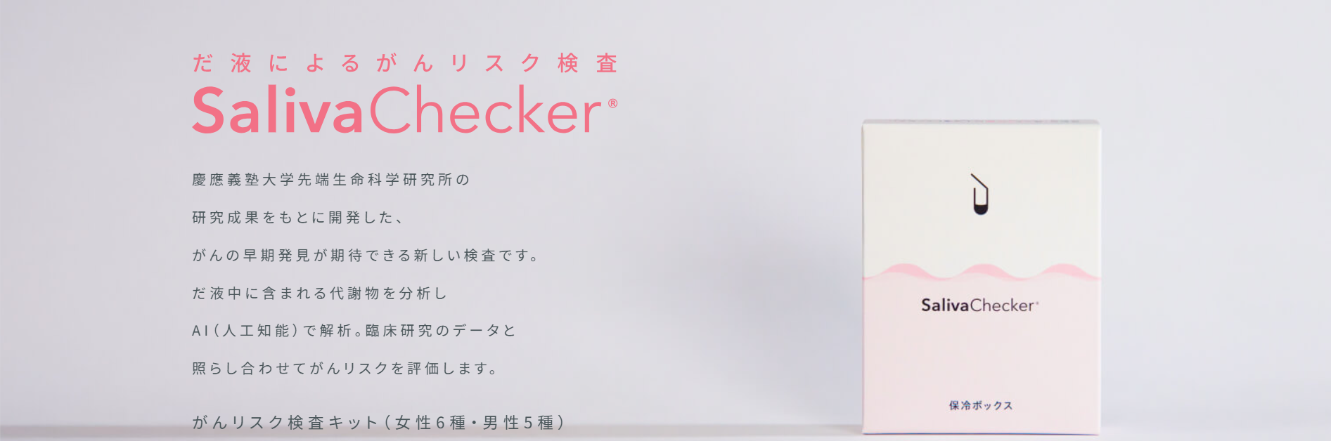 がんリスクをご自宅でチェックしてみませんか?少量のだ液で肺がん、膵がん、大腸がん、乳がん、口腔がん、胃がんの6種類(男性は乳がんを除く5種類)のリスクを部位別に検査ができます。